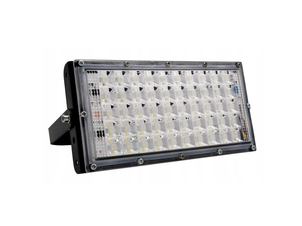 Plochá halogenová LED lampa s vysokým výkonem, která se vyznačuje kompaktními rozměry a umožňuje snadné propojení do větších sestav pro dosažení ještě vyššího světelného výkonu. Tento reflektor je vybaven vodiči pro jednoduché připojení k elektrické síti. Poskytuje silné osvětlení při nízké spotřebě energie díky pokročilým LED diodám, což zaručuje vysokou účinnost. Halogen je vybaven studeným bílým světlem a má elegantní černý rámeček.